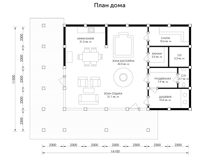 Уникальность фахверковых домов в том, что несущий каркас из клееной древесины можно «нарастить» в длину кратно 2,6 м, тем самым увеличить полезную площадь дома. Фахверковый дом можно менять и внешне, например, варьируя площадь остекления. Подобная легкость и творческая свобода в создании собственного дома – уникальная особенность проектов этой серии.